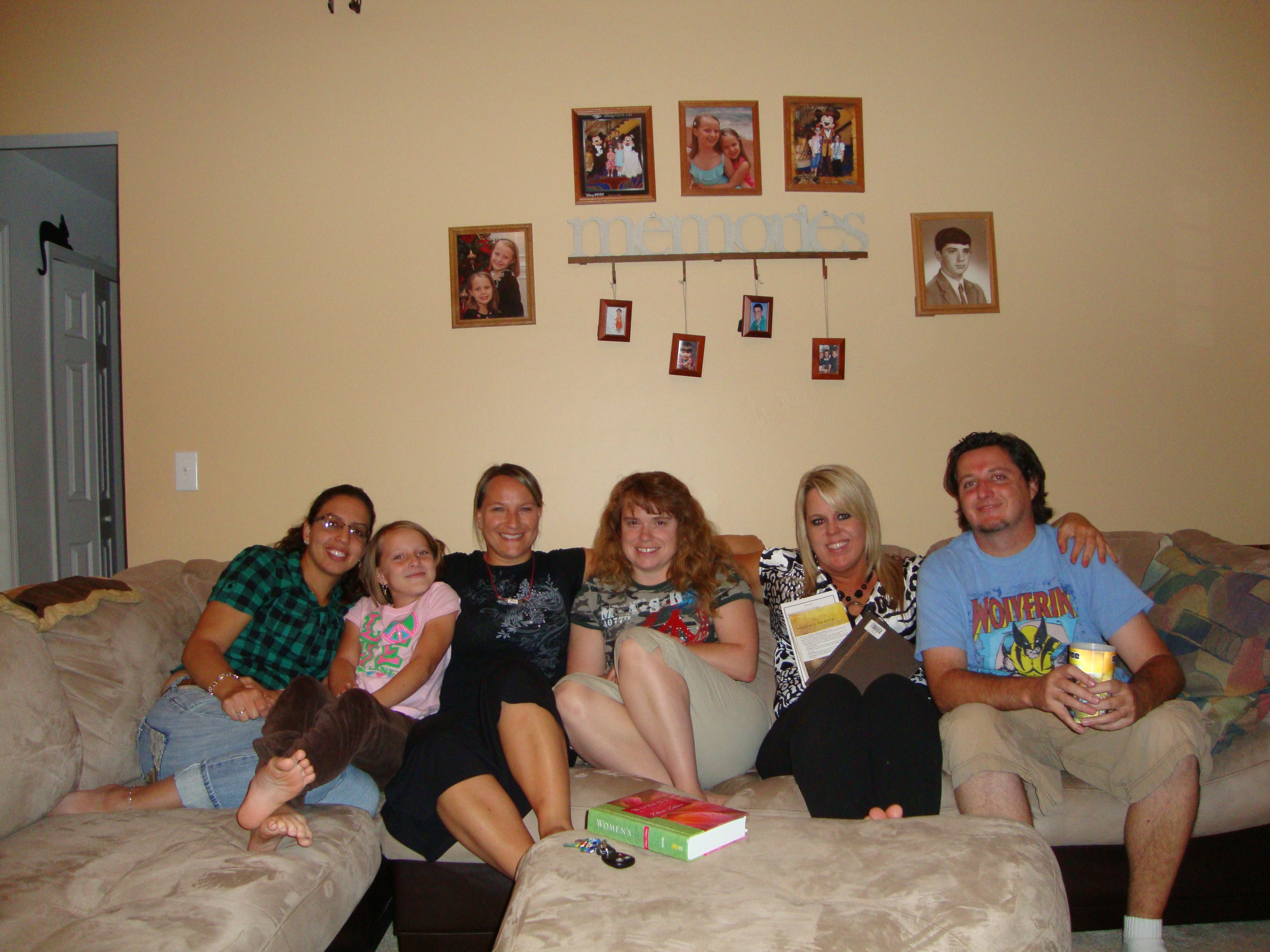 Our last group meeting--we're all bloated in this picture after a feast of meatloaf, green bean casserole, corn muffins, and homemade mac n' cheese:)